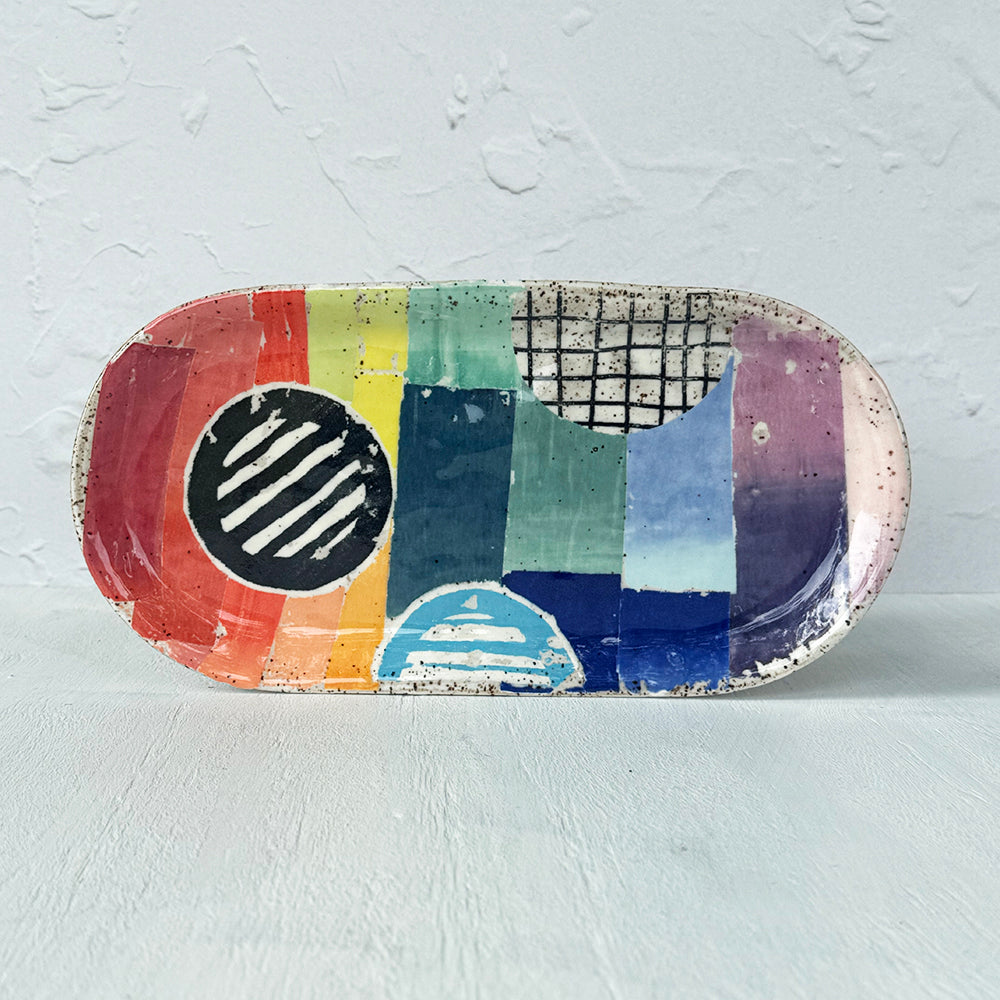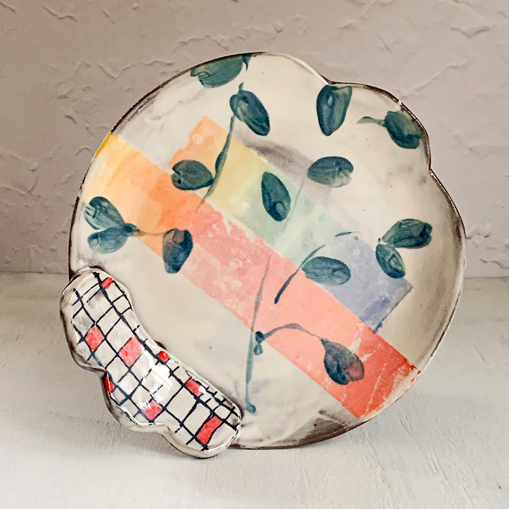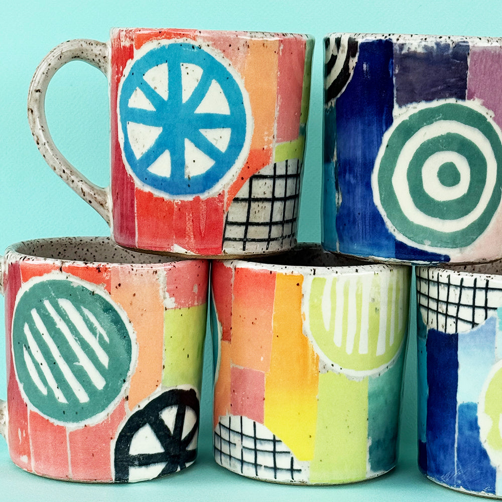 Hi! I'm Heidi Fahrenbacher (fair-en-bach-er). I am the artist behind Bella Joy Pottery. Each piece is handmade with the intention to make you smile, to bring you a little joy. I like bright colors, graphic patterns, old Atari games, animals, and being a goofball.