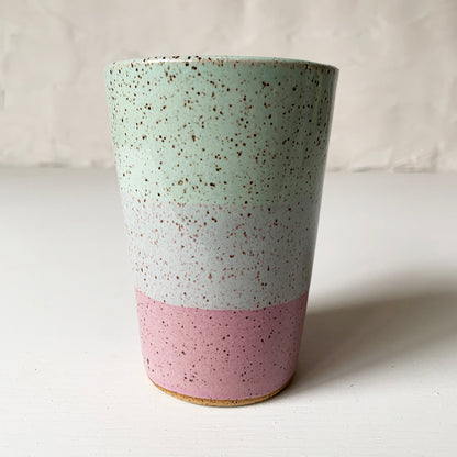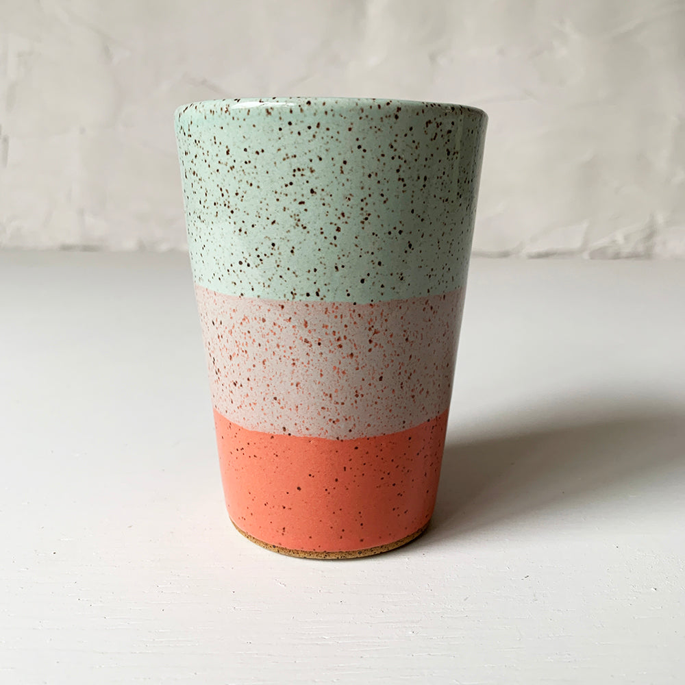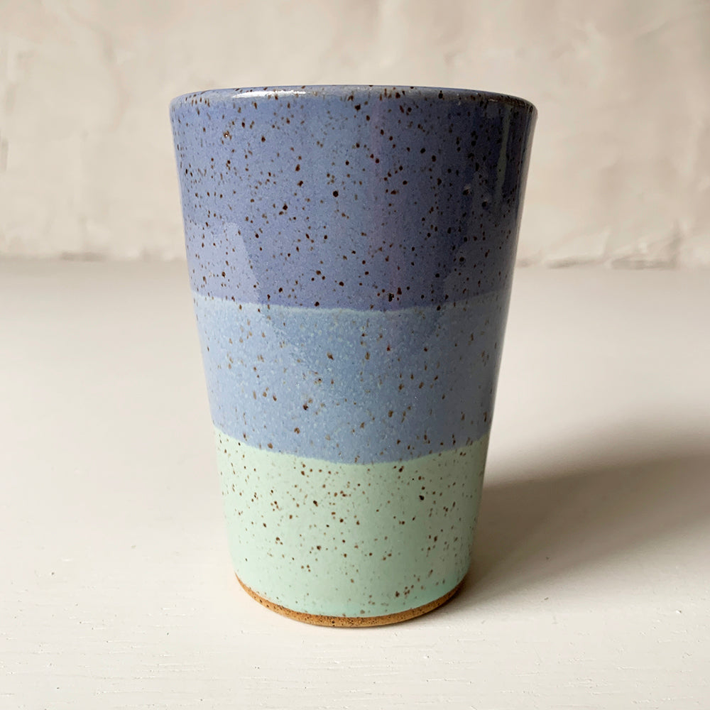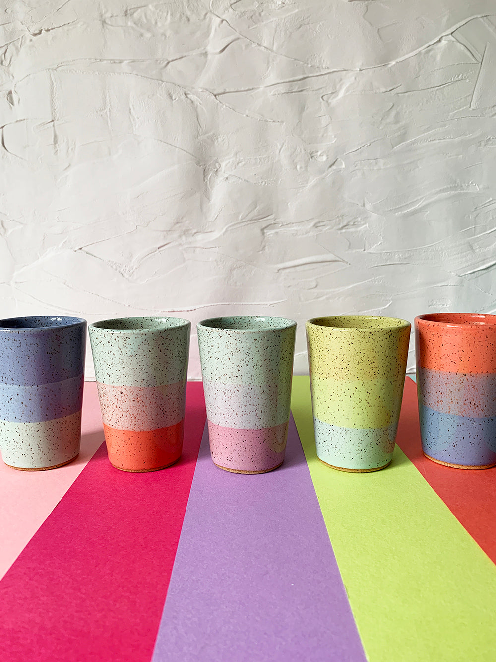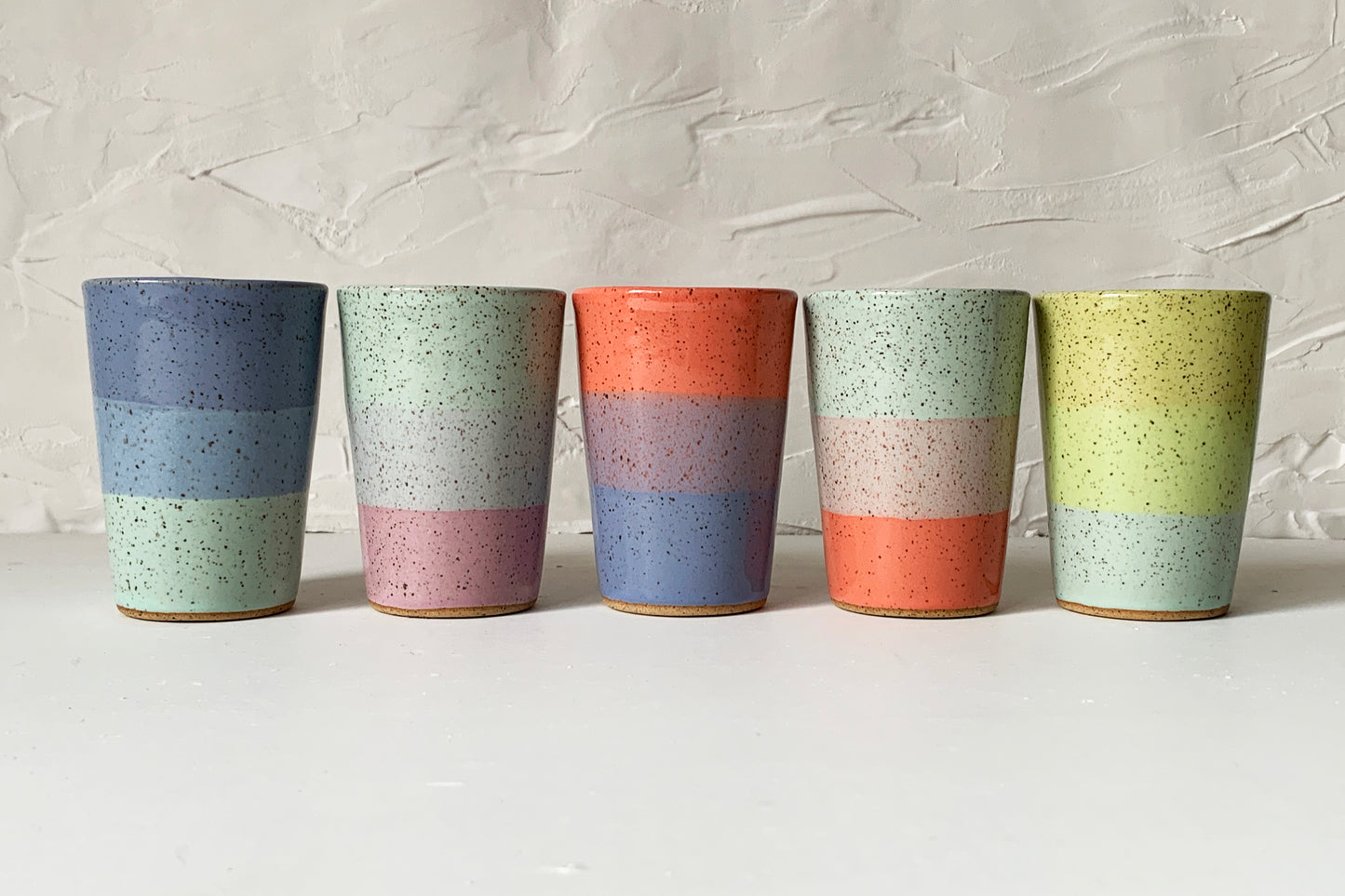 Each handmade cup is 4" tall by 3" wide and holds 8oz.