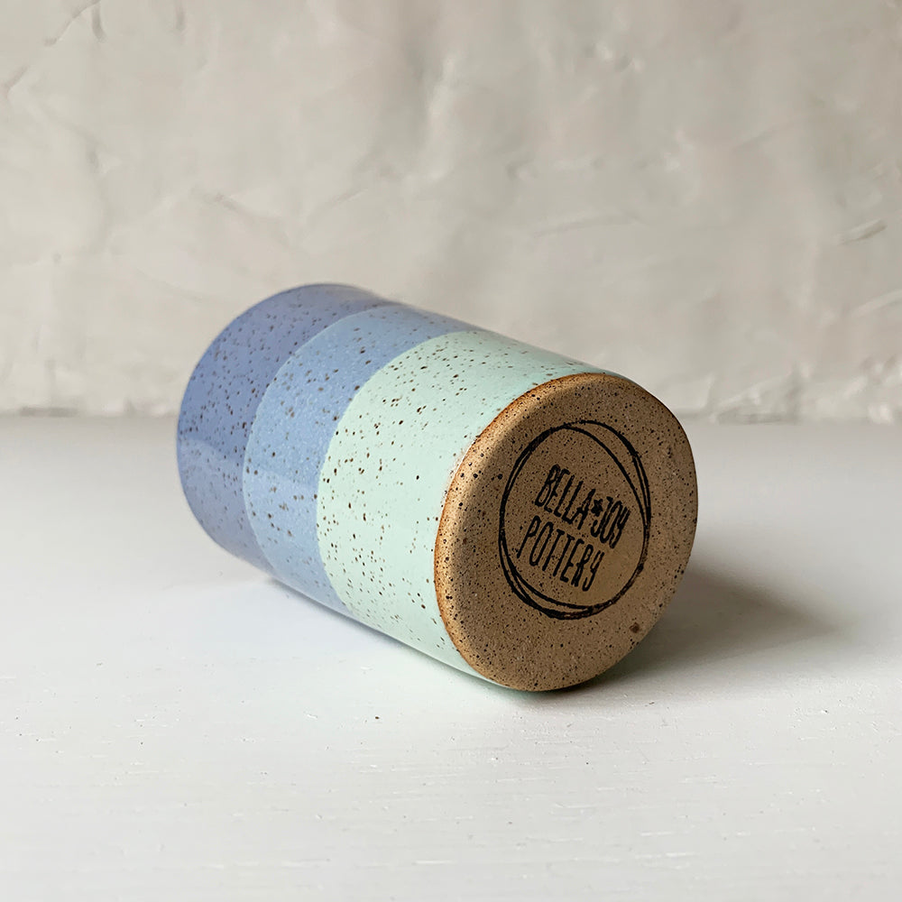We have been enjoying our Brighter Days cups in Pool Party glaze. They blend well with our Master Bathroom decor. The weight of the cup is nicer than our previous plastic glasses. We like adding these to our Bella Joy Pottery collection.