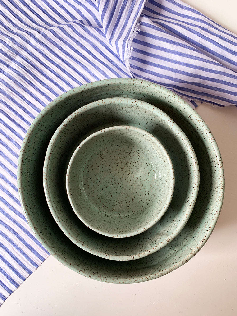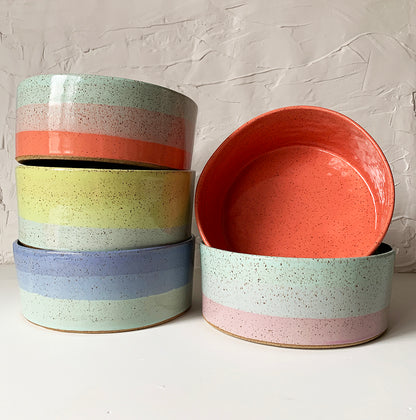 I am captivated by the beauty of speckled new stoneware clay, coupled with my vibrant glazes, that are made in house, I just want to throw a party and celebrate something!