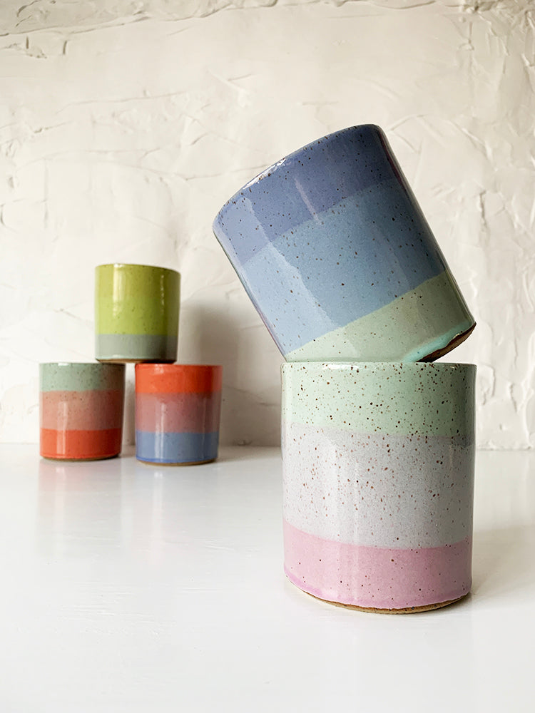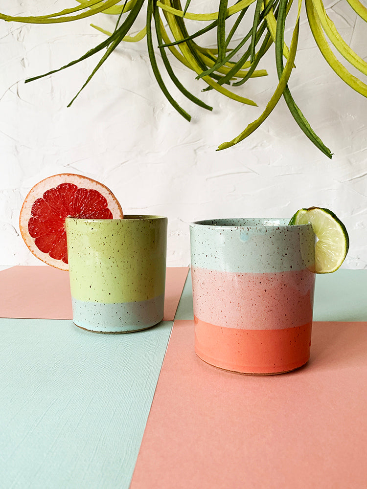 Add a splash of color to your drinkware with these fun handcrafted stoneware rocks cups!