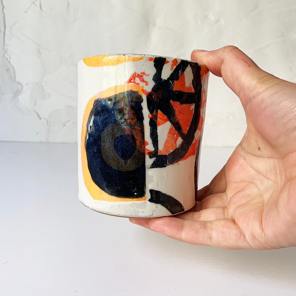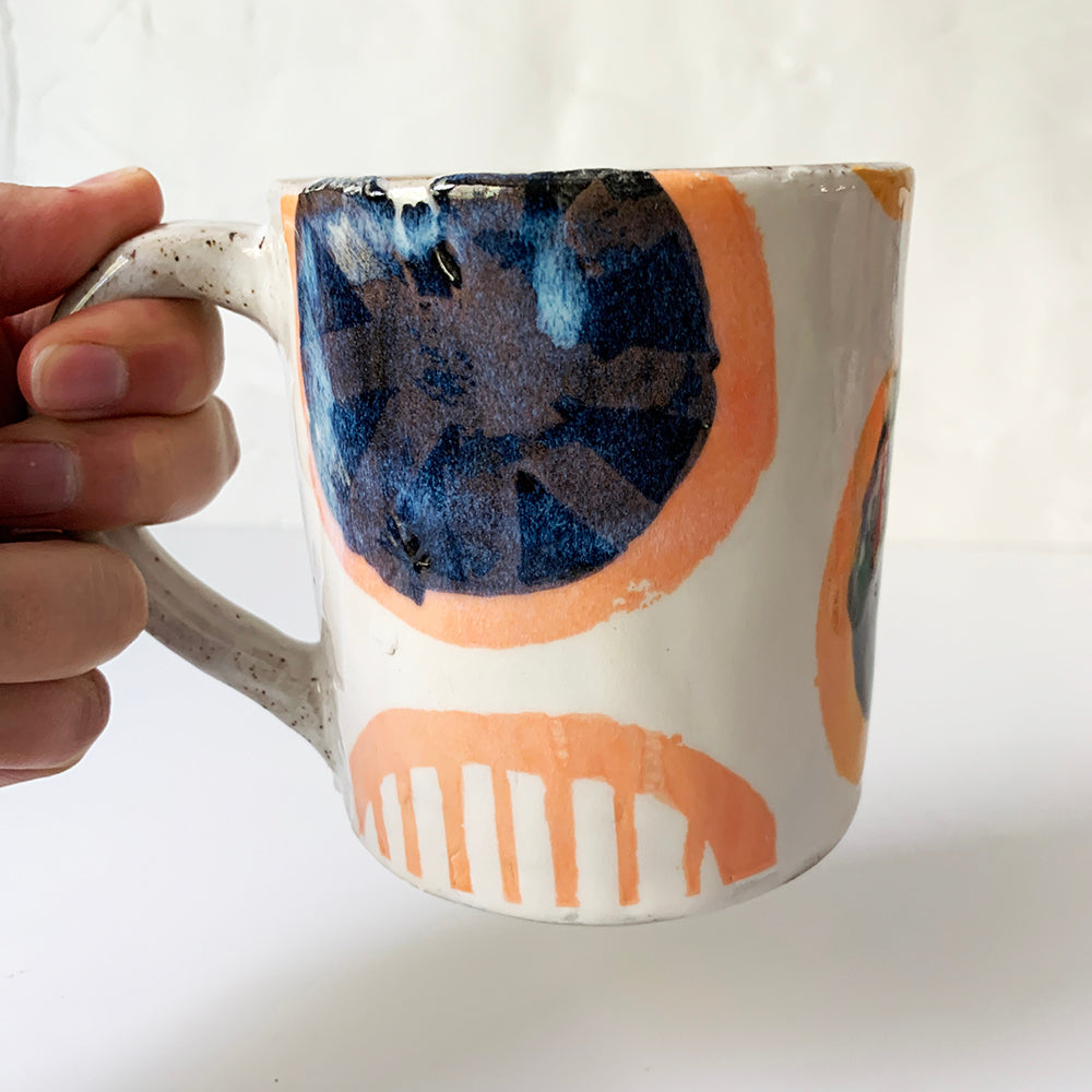 Image transfer with newsprint is a multiple step process that can create interesting results with slip and underglaze. Possibilities with this technique are limitless! In this workshop we will be decorating the mug seen below.